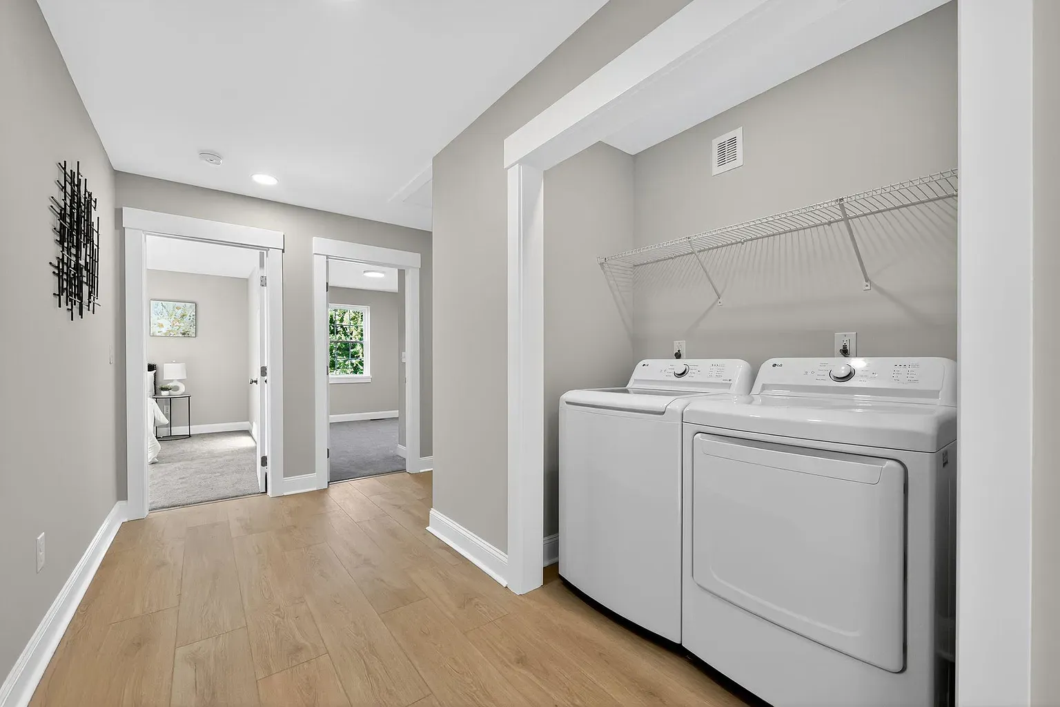- Upper Level: 4 bedrooms, 2 full bathrooms, dedicated laundry room with washer/dryer included